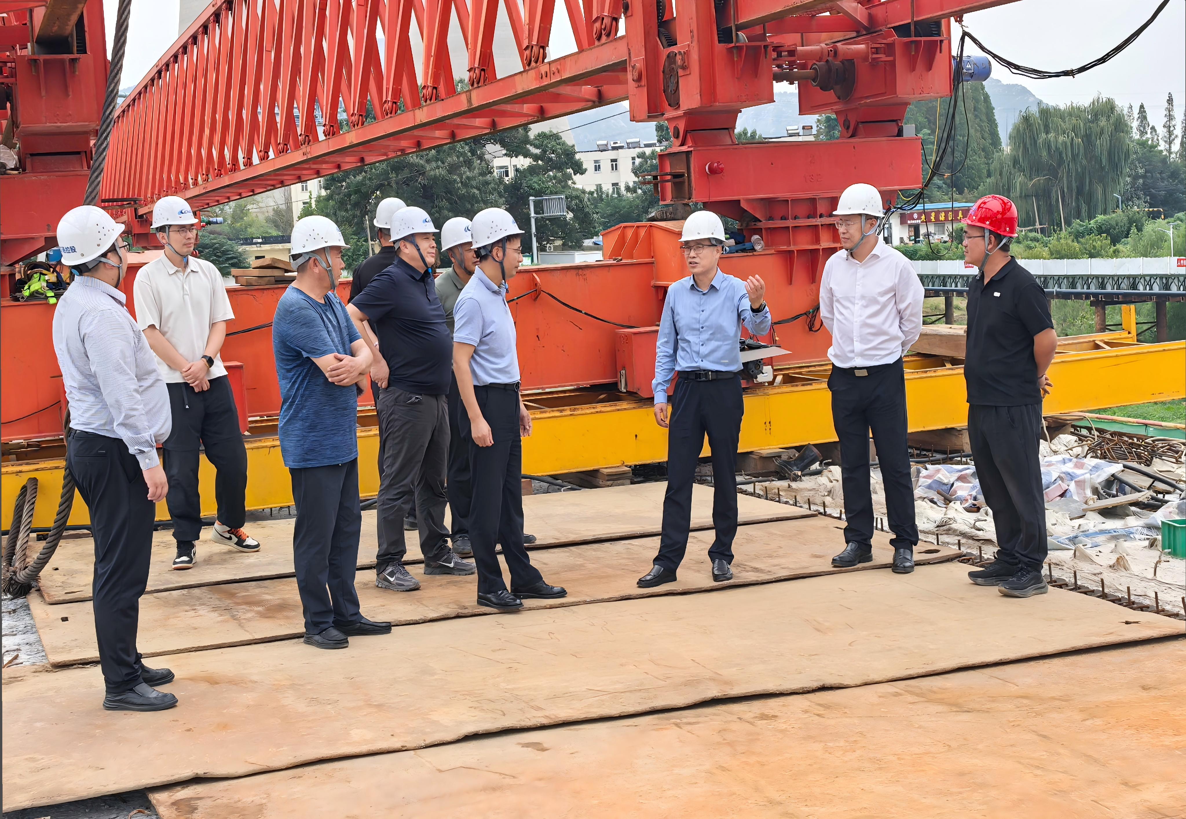 隨后,視察組來到洪門大橋項目現(xiàn)場,聽取項目負責(zé)人關(guān)于施工進展的匯報。大橋目前正處于沖刺攻堅階段,仲偉濤強調(diào),要始終堅持“質(zhì)量第一、安全至上”原則,在搶工期、趕進度的同時,嚴格把控橋梁結(jié)構(gòu)安全、橋面鋪裝質(zhì)量等核心環(huán)節(jié);要進一步優(yōu)化施工方案,科學(xué)調(diào)配人力物力資源,緊盯關(guān)鍵節(jié)點,確保項目如期通車;要筑牢安全生產(chǎn)防線,加強現(xiàn)場施工人員安全培訓(xùn)與實操管理,從源頭杜絕各類安全隱患。